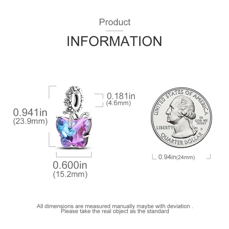 2025 Hot Sale 925 Sterling Silver Pink Butterfly Luminous Firefly Charm | Dangle Bead Fit Bracelet Necklace DIY Jewelry