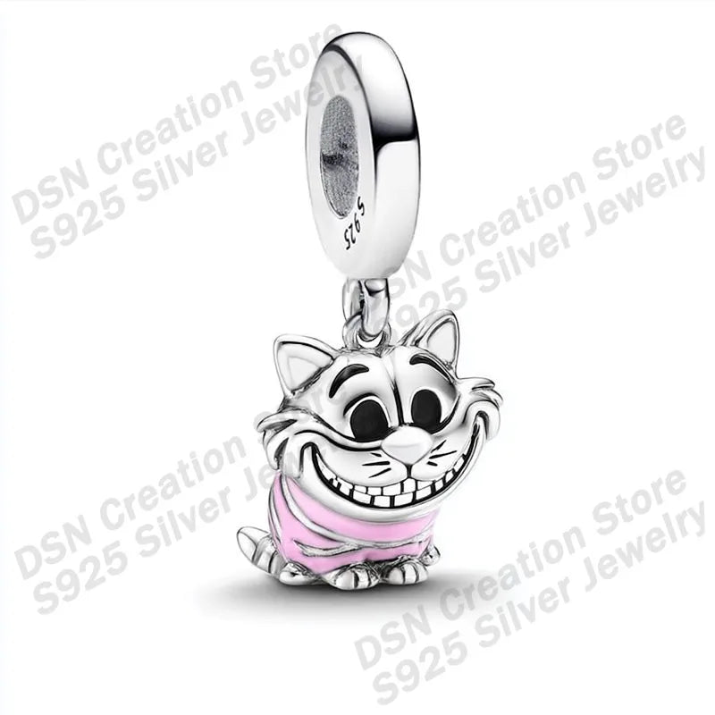925 Sterling Silver Disney Charms | Stitch, Mickey & Cheshire Cat Beads for Original Bracelet Halloween Jewelry Gift