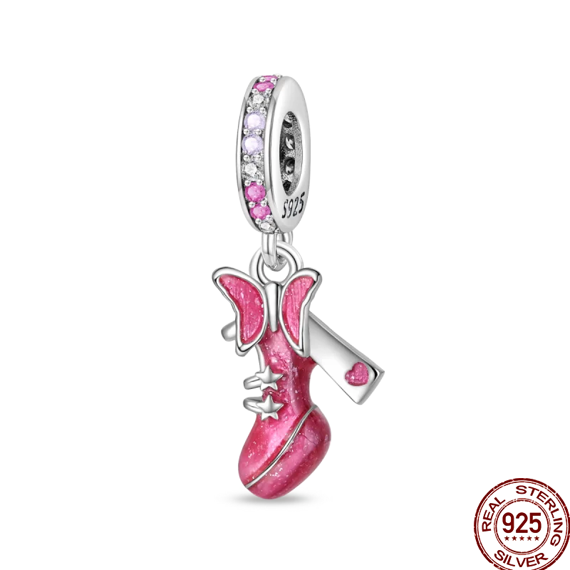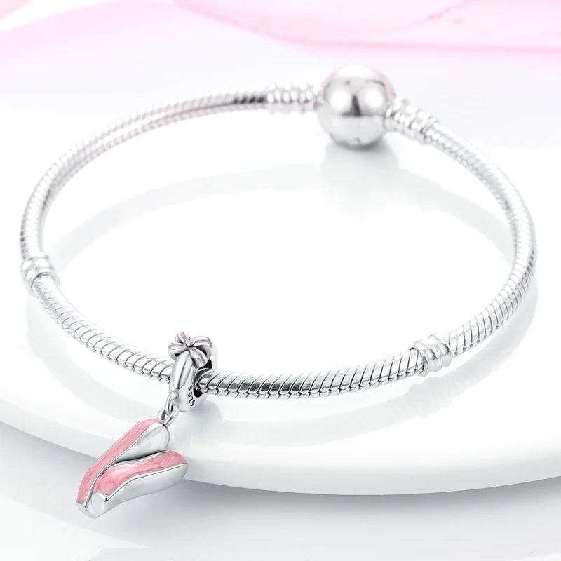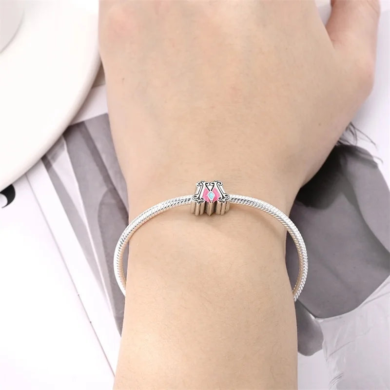 Add a touch of elegance to your bracelet with this 925 Sterling Silver Romantic Princess Charm Bead, featuring a pink dress, lipstick, and dancing shoes design. Specially crafted to fit 3MM original bracelets, this charm makes the perfect gift for women and girls who love fashion and feminine style.