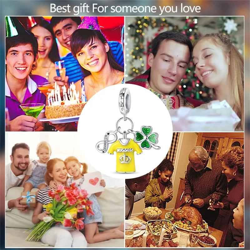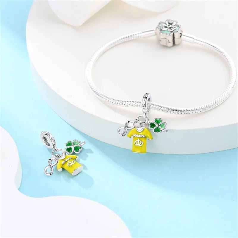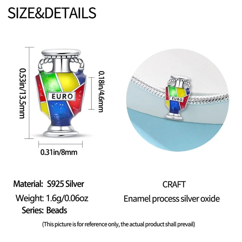 Show your love for soccer with this 925 Sterling Silver Soccer Trophy Jersey Charm Bead, designed to fit 3mm bracelets. Perfect for DIY jewelry making, sports fans, and personalized bracelet designs, this charm is an ideal gift for women, men, and teens.