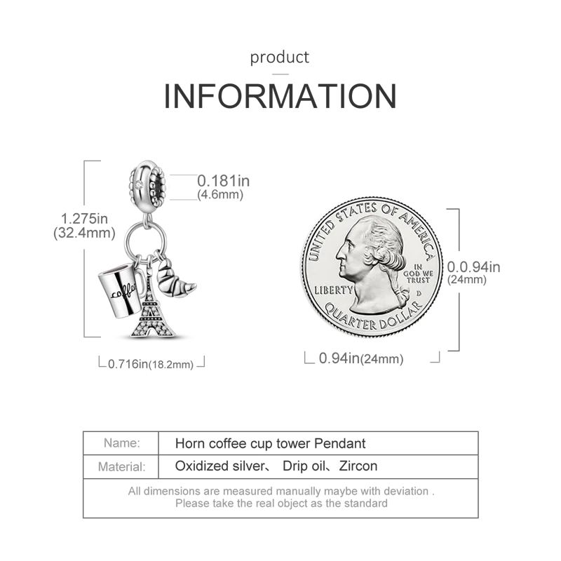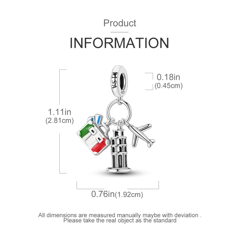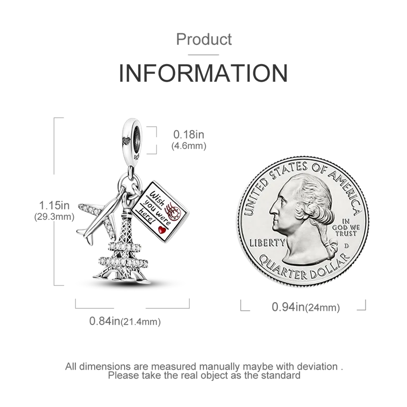 925 Sterling Silver Travel Around the World Charm Bead | Eiffel Tower & Triumphal Arch Dangle for Original Bracelet DIY Jewelry