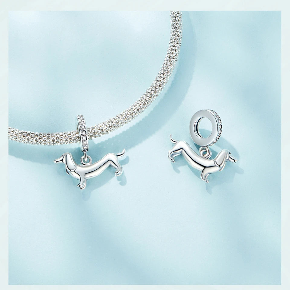 Adorn your bracelet with the charm of loyalty 🐶✨! The BISAER 925 Sterling Silver Cute Dog Charm Bead features an adorable Dachshund design, plated with platinum for a lasting shine 💎. Perfect for DIY bracelets and fine jewelry making, this pet-inspired pendant adds elegance and warmth to any look 💖.