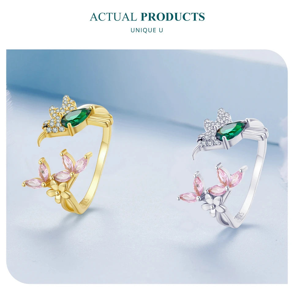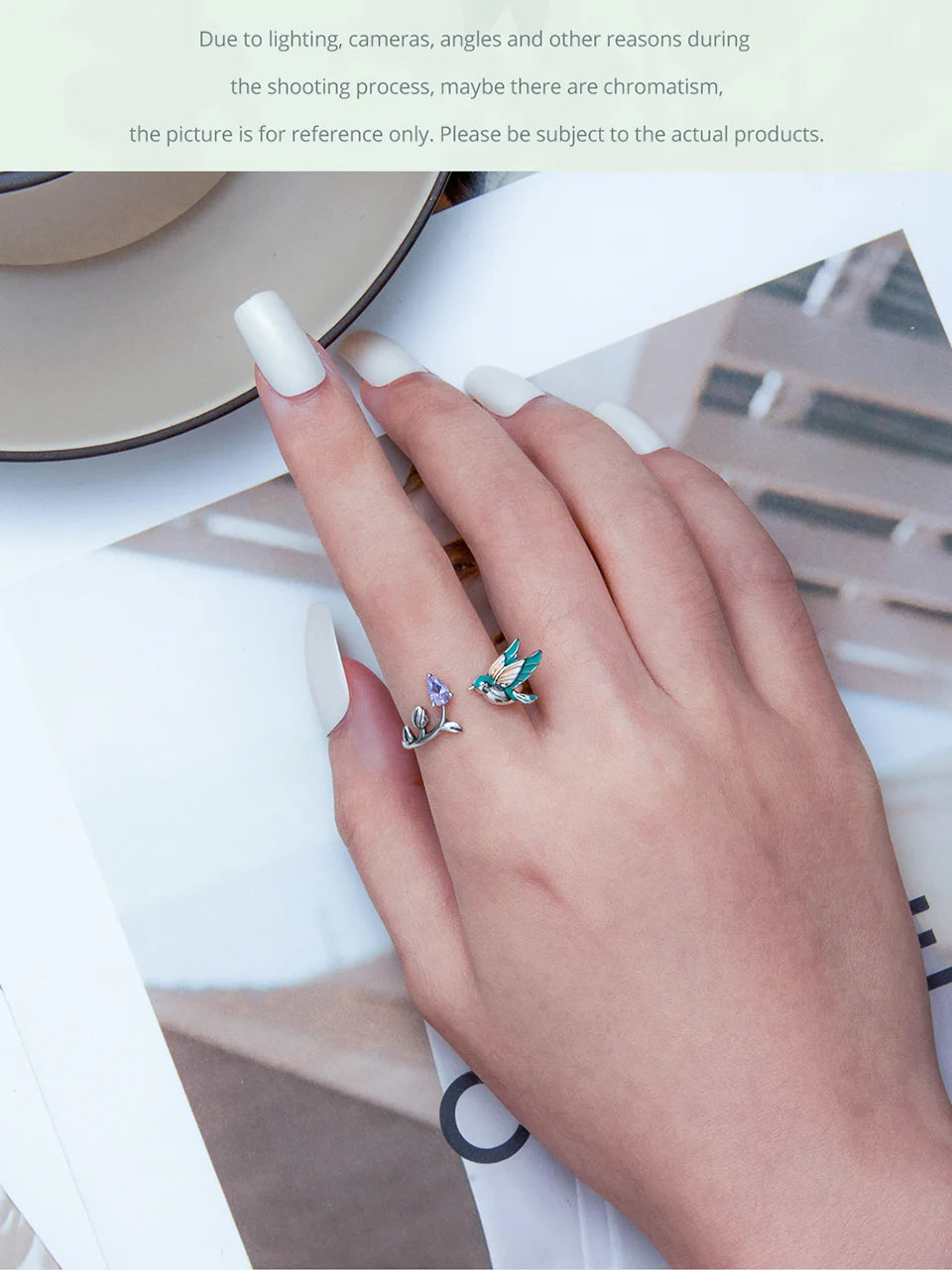 Let your style take flight — this BISAER floral bird ring blends elegance, symbolism, and timeless charm! 💐🐦