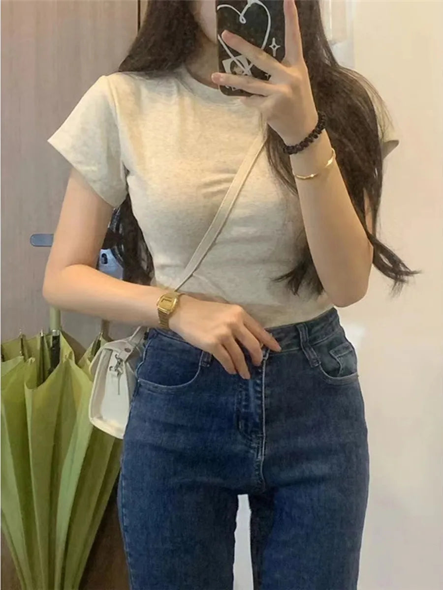 Ideal as a base layer or a standalone top, this minimalist T-shirt complements any outfit — from jeans and skirts to shorts or blazers. Its classic round neck design and lightweight feel make it a must-have for everyday wear 💫.