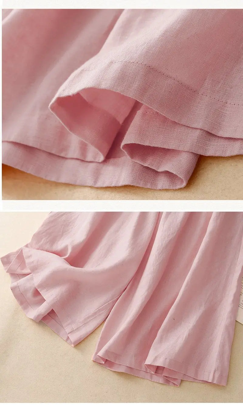 Crafted from a soft cotton-linen blend, these joggers offer breathable comfort with a vintage-inspired wide-leg design that’s perfect for casual outings, lounging, or beachwear. 💫