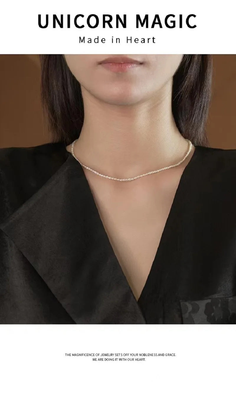 🤍✨ Elevate your elegance with the Dainashi 925 Sterling Silver Freshwater Pearl Necklace, featuring 2.5–3.5mm natural rice-shaped pearls strung beautifully along a 40cm collar length chain.