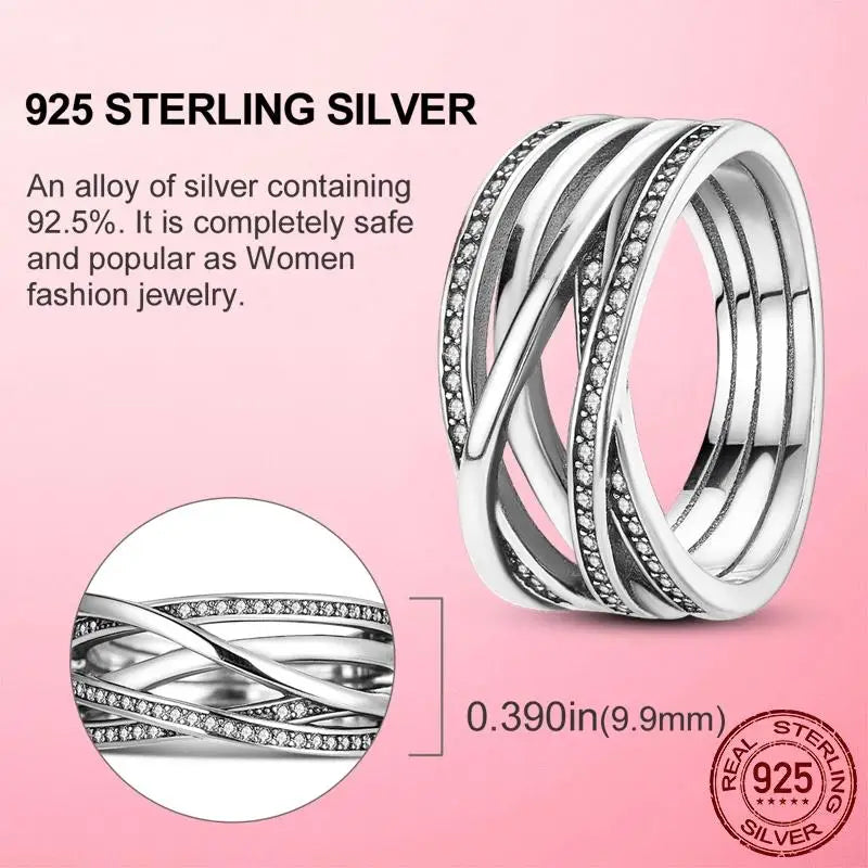 This stunning 925 sterling silver ring combines polished smooth lines with sparkling cubic zirconia accents 💎, creating a luxurious and graceful look for modern women.