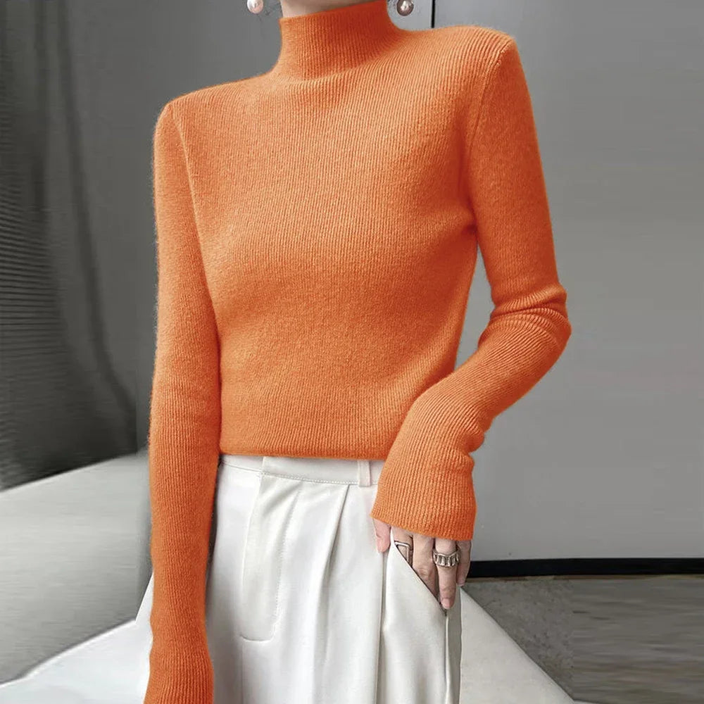 Stay stylish and cozy with this High Collar Long-Sleeved Knitted Sweater for Women ❄️✨. Designed with a slim-fit silhouette, this versatile top hugs your curves while providing warmth and comfort, making it perfect for layering or wearing on its own.
