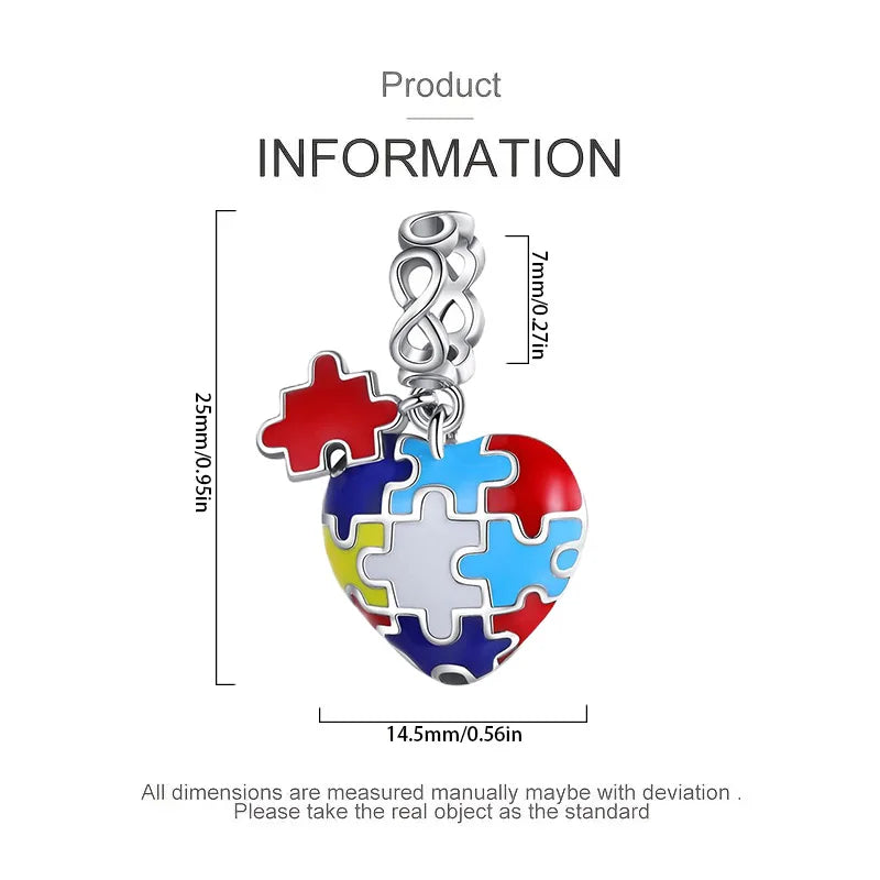 Made from premium 925 sterling silver, this heart-shaped puzzle charm features a vibrant mix of colors 🎨 that bring your bracelet or necklace to life. It’s fully compatible with Pandora bracelets and necklaces, allowing you to personalize your jewelry with ease 🌟.
