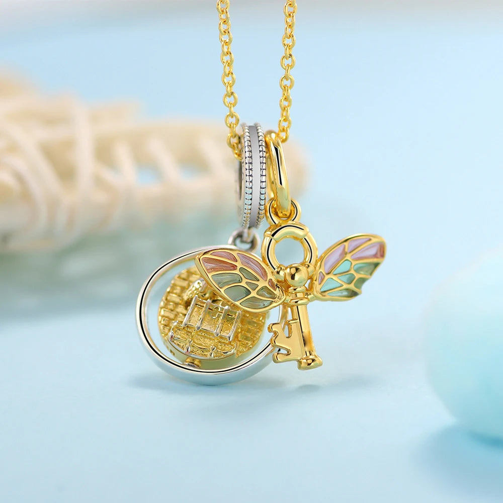 925 Sterling Silver Disney Castle Flower Fairy Rabbit Wings Charm | Fits Original Bracelet Pendant Women DIY Jewelry