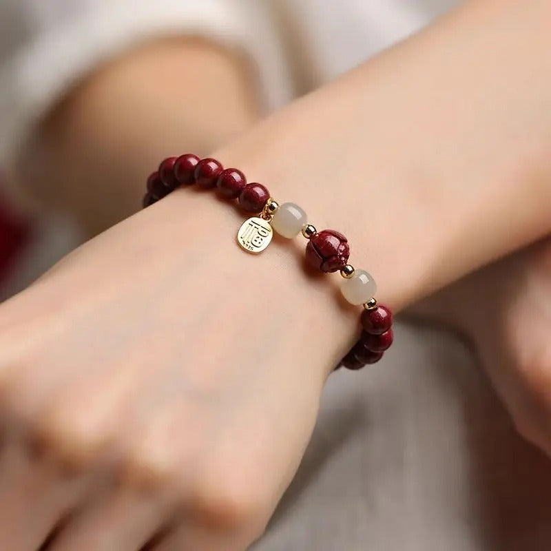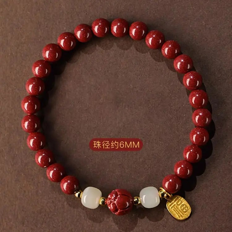 Embrace elegance and prosperity with this Natural Cinnabar Lotus Purple-Gold Wealth Bracelet, a luxurious piece of jewelry designed to attract positive energy and fortune. Crafted with high-quality cinnabar beads and a lotus-inspired design, this bracelet pairs beautifully with Pandora style charms and beads, making it perfect for both fashion and spiritual jewelry lovers. An excellent choice as an upscale gift for birthdays, anniversaries, or special occasions.