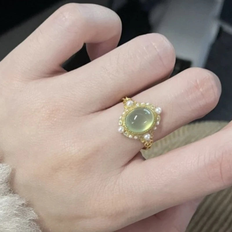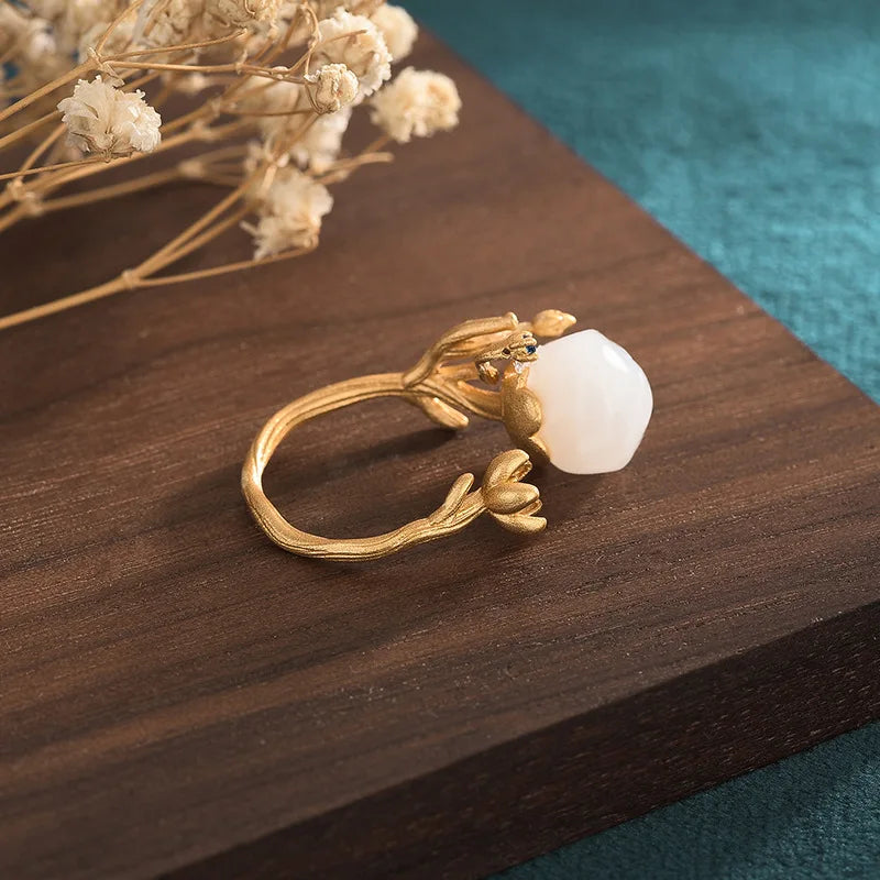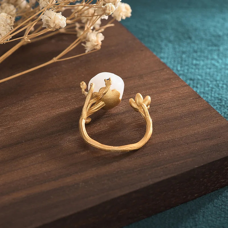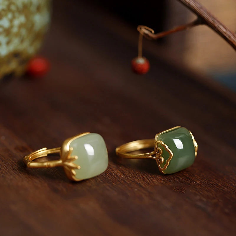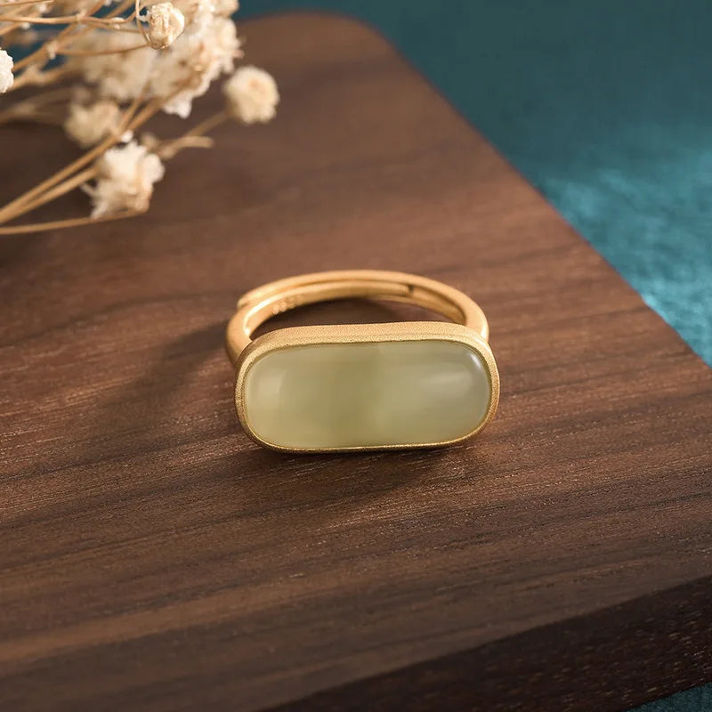 ✅ 925 Sterling Silver | Hotan Jade Gemstone | Adjustable Geometric Design | Delicate Retro Jewelry Gift for Women 💎