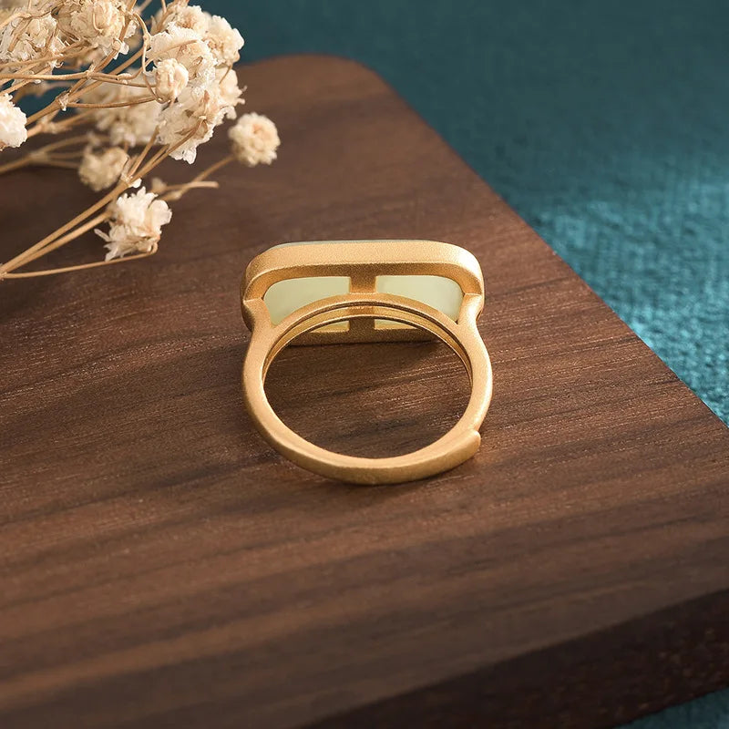 💎 Elevate your style with the PANJBJ 925 Sterling Silver Hotan Jade Geometric Ring, a retro-inspired and delicately crafted piece perfect for women and girls ✨. Featuring genuine Hotan jade set in a geometric sterling silver design, this adjustable ring combines elegance and modern sophistication.