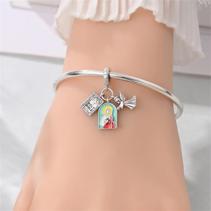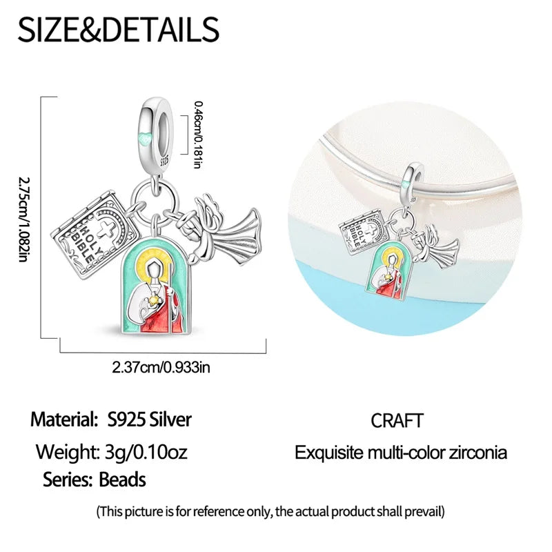 ✅ 925 Sterling Silver | Jesus Cross & Bible Scripture Pendant | Fits Original Bracelets | Women DIY Jewelry Gift ✝️