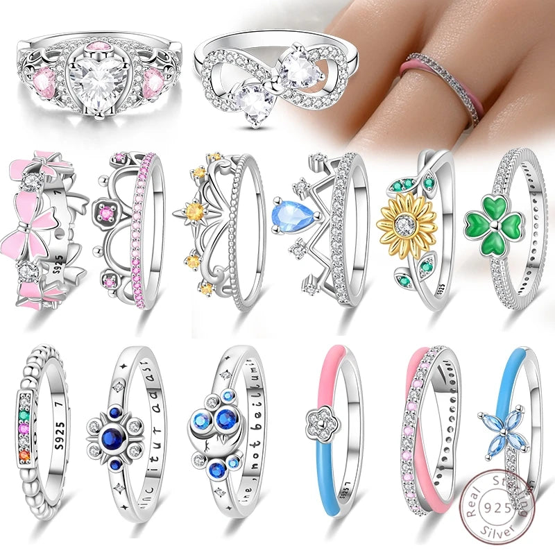 💍 Shine bright with this Original 925 Sterling Silver Rings Collection 💎✨. Featuring elegant bow, heart, sun, moon, and star designs, each ring is beautifully adorned with sparkling zircon stones, symbolizing love, light, and endless beauty 🌙💖.