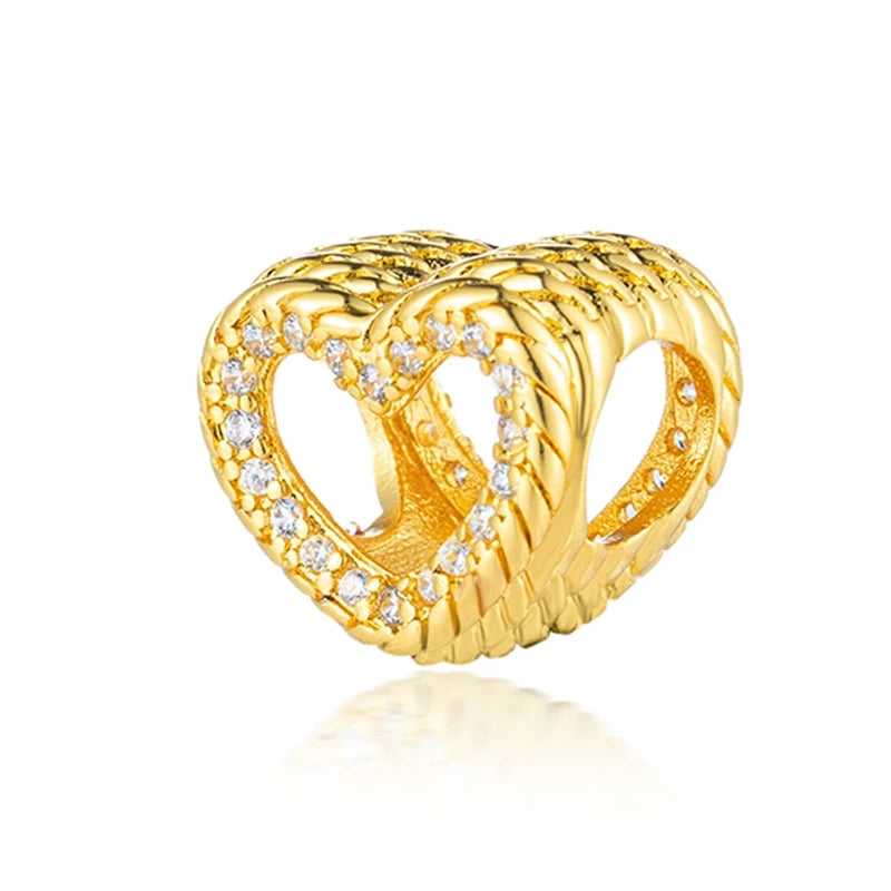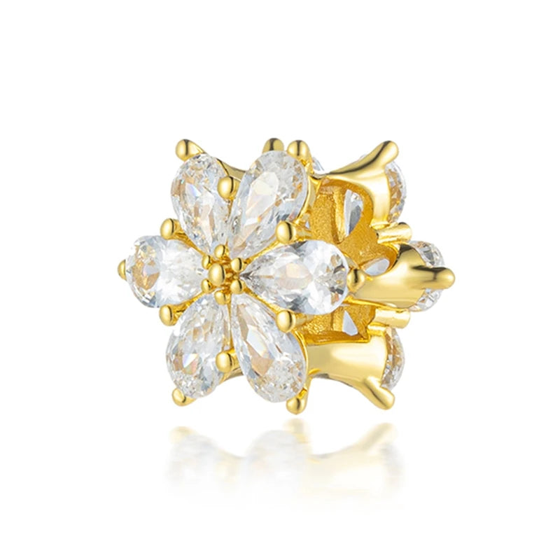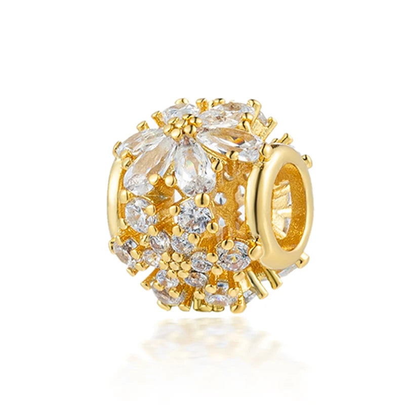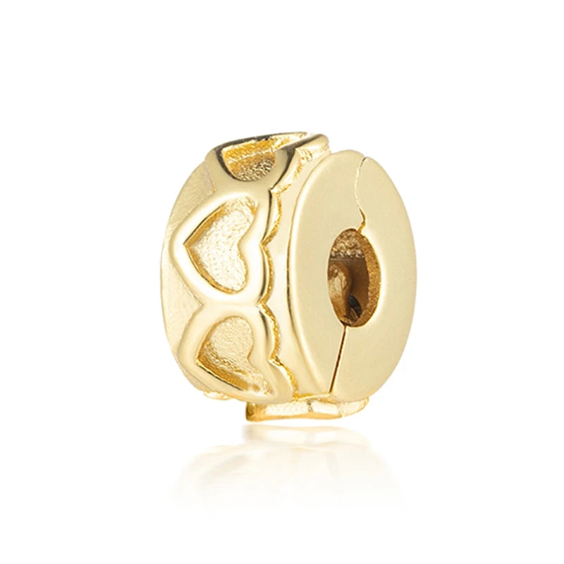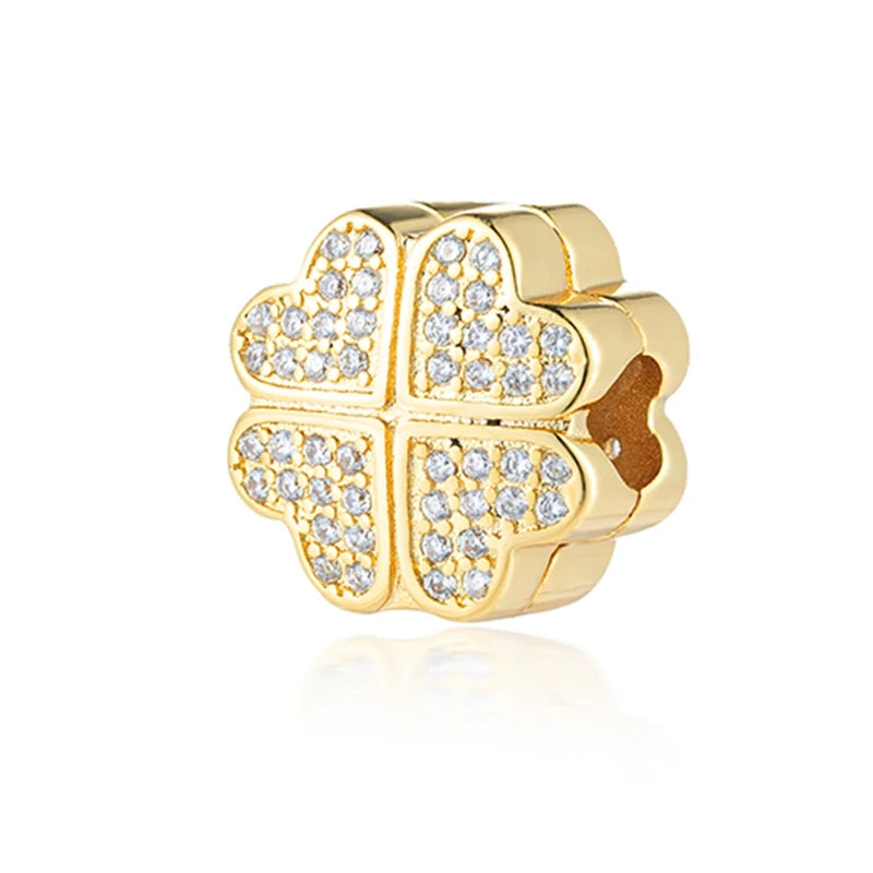 💖 Add a luxurious touch to your bracelet with our Sparkling Gold Plated Heart & Flower Clip Dangle Charm Beads ✨🌸!