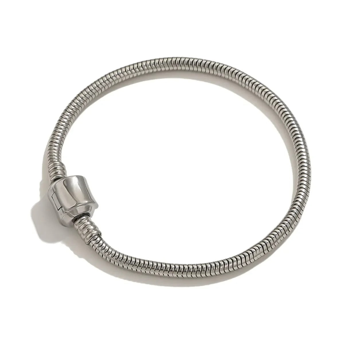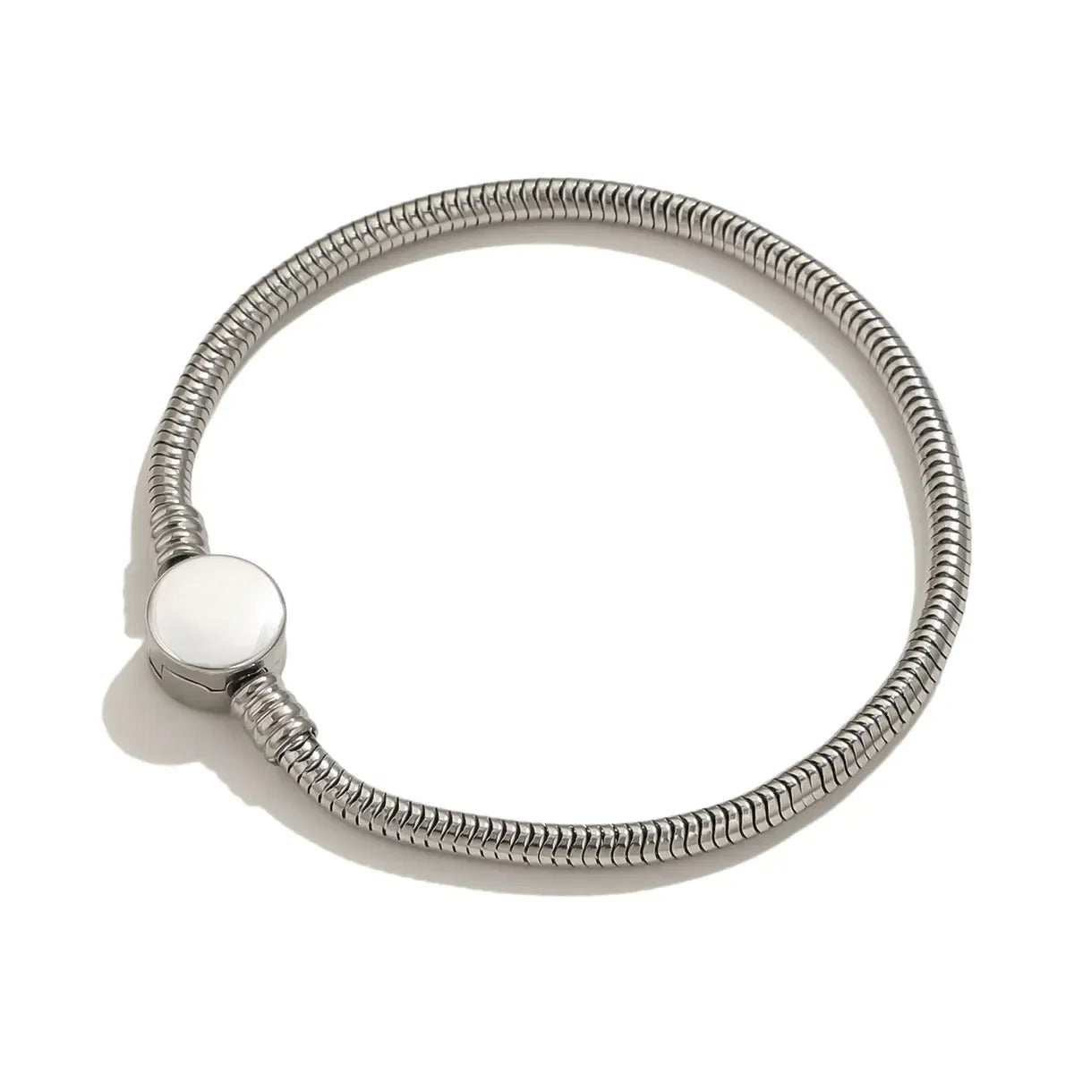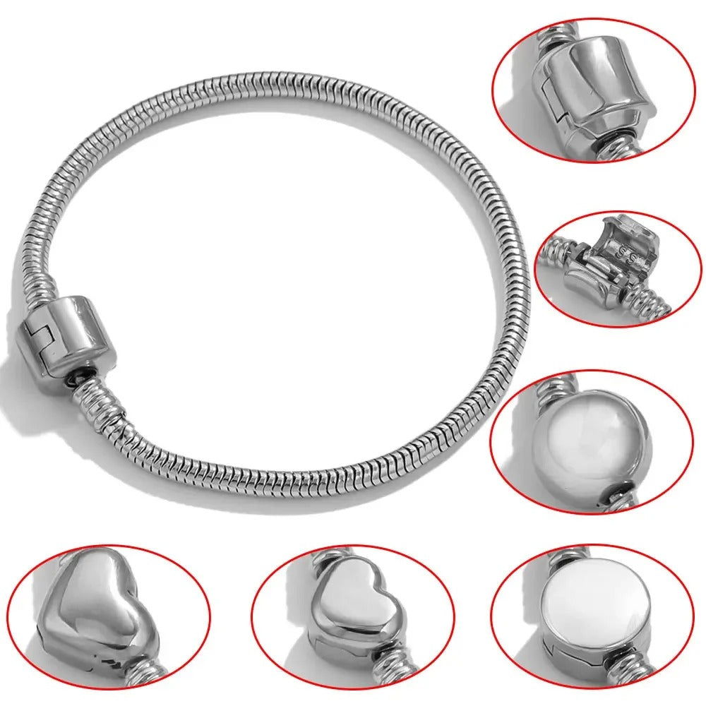 Create your own personalized jewelry with this Stainless Steel Snake Chain Charm Bracelet, designed with a heart clasp for elegance and durability. Perfectly compatible with Pandora-style charms and beads, this bracelet is ideal for DIY jewelry making, customization, or wholesale supplies.