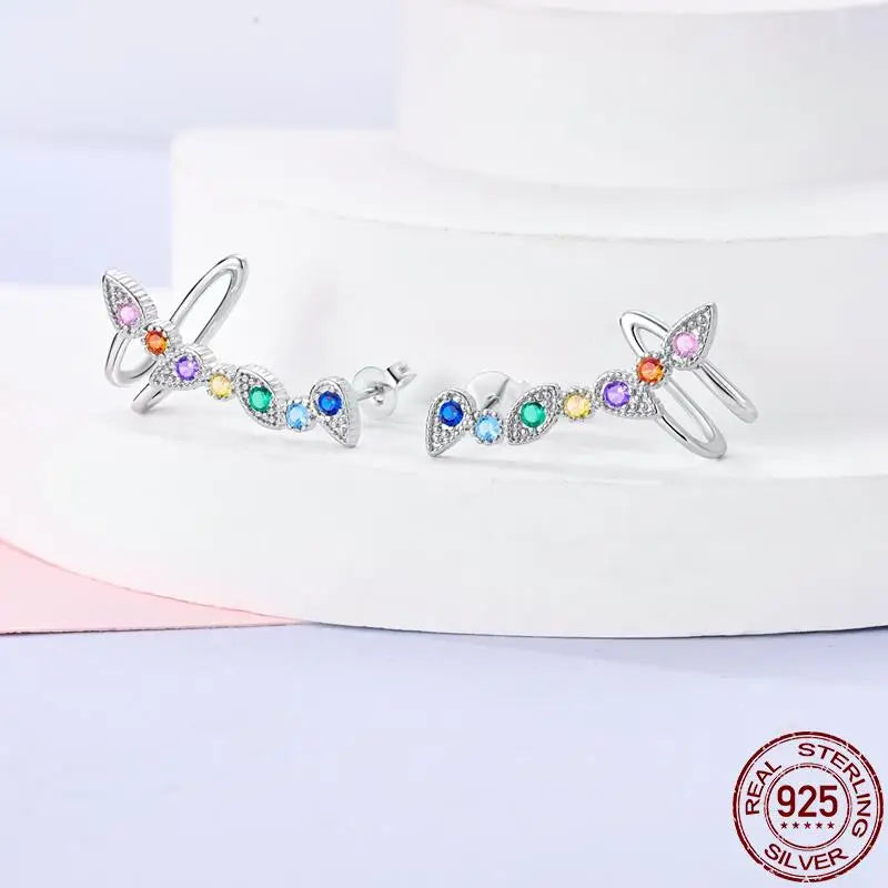 ✅ Genuine 925 Sterling Silver | Pave CZ Crystals | Colorful Butterfly Design | Elegant Gift for Women