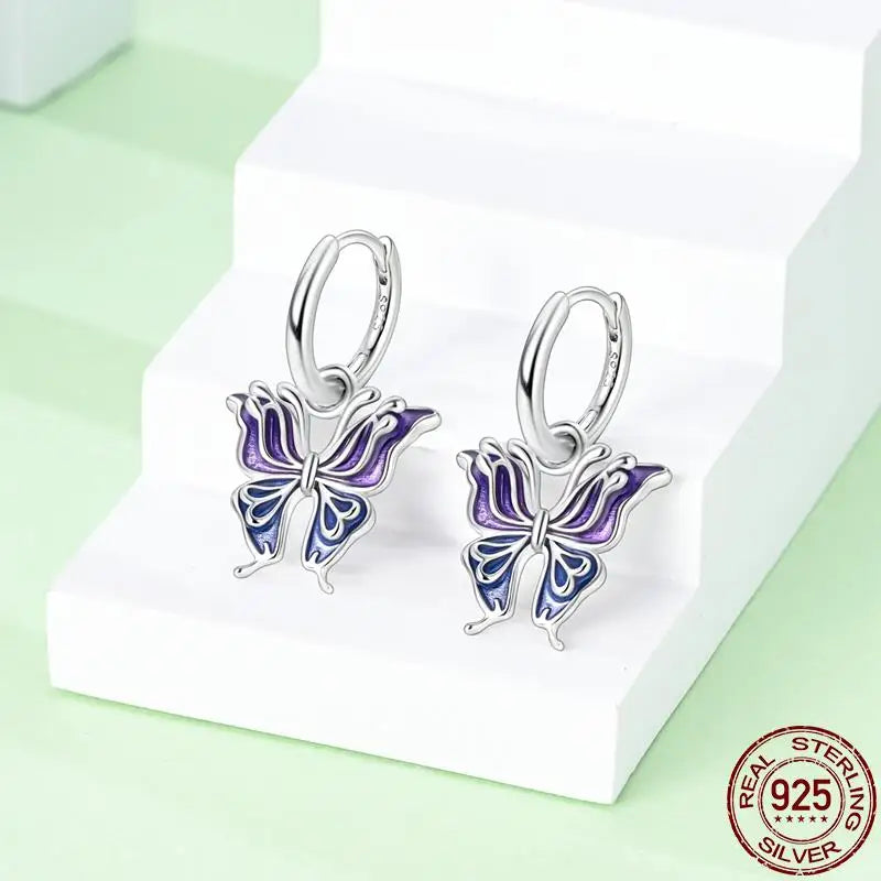 🦋 Add a burst of color and charm to your look with these 925 Sterling Silver Colorful Butterfly Hoop Earrings 🌈! Featuring dazzling pave cubic zirconia (CZ) stones, these hoops shine brilliantly from every angle — perfect for women who love elegant yet bold jewelry.