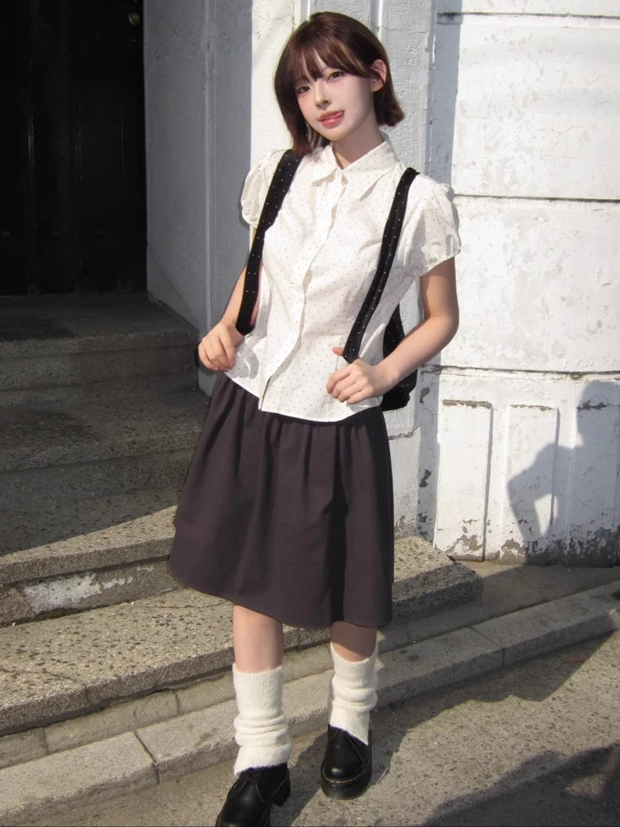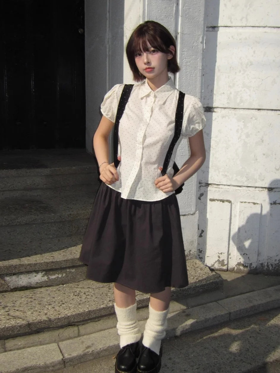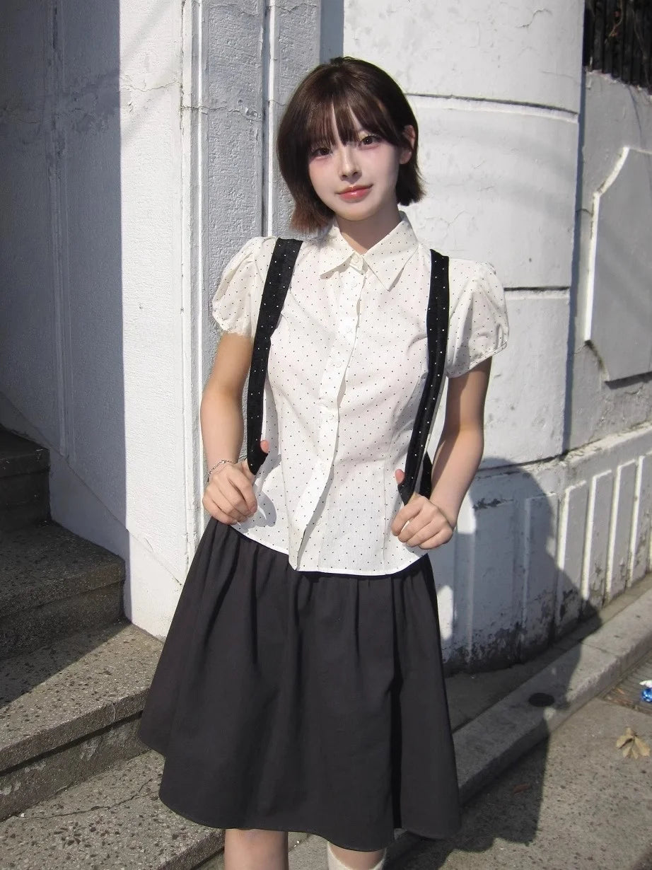 🌸 Embrace elegance and charm with our Sweet Korean Style Polka Dot Bubble Sleeve Blouse for Women 💕✨!