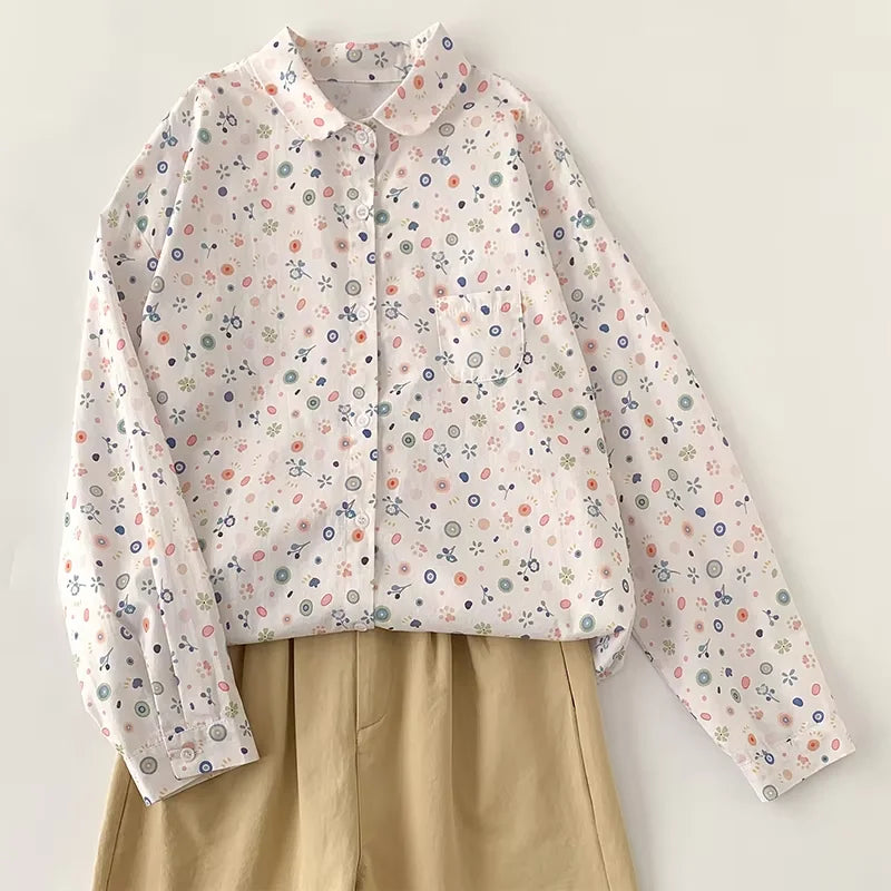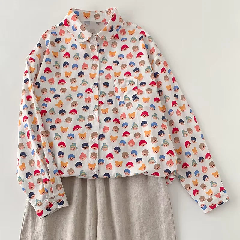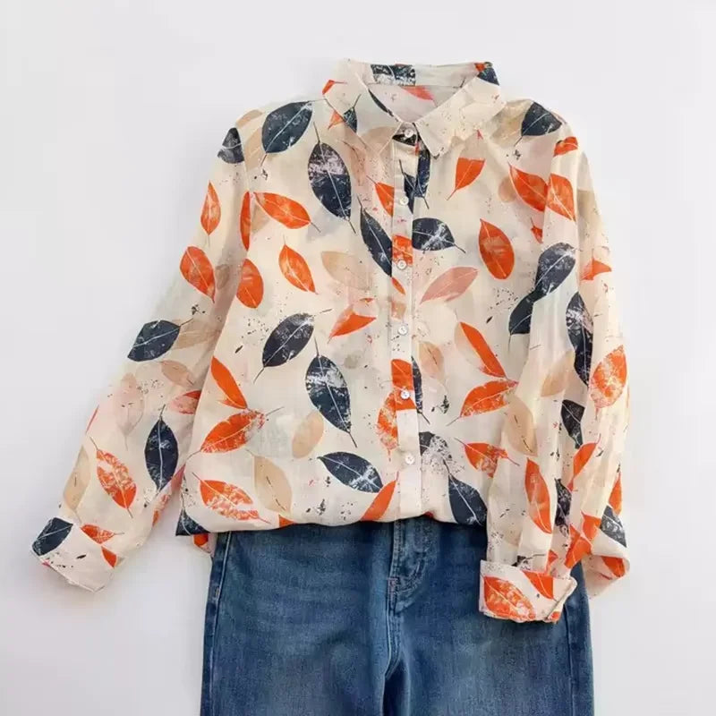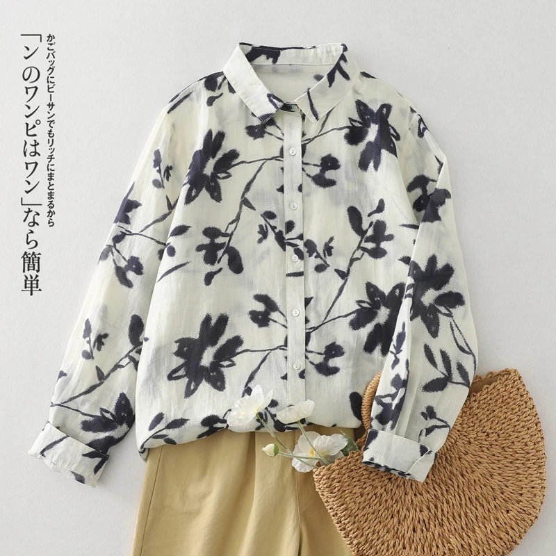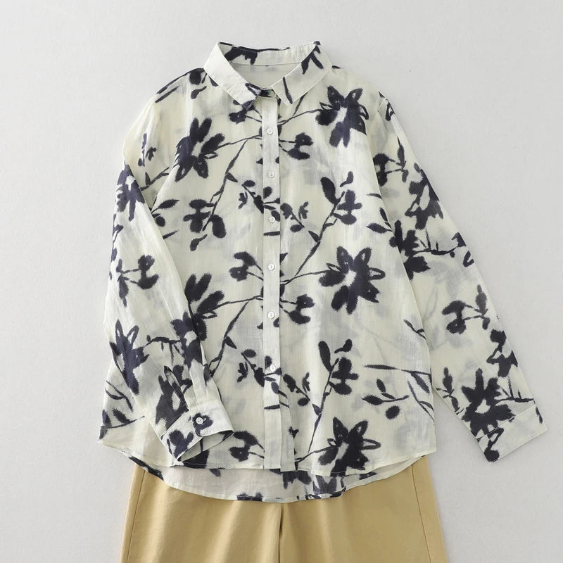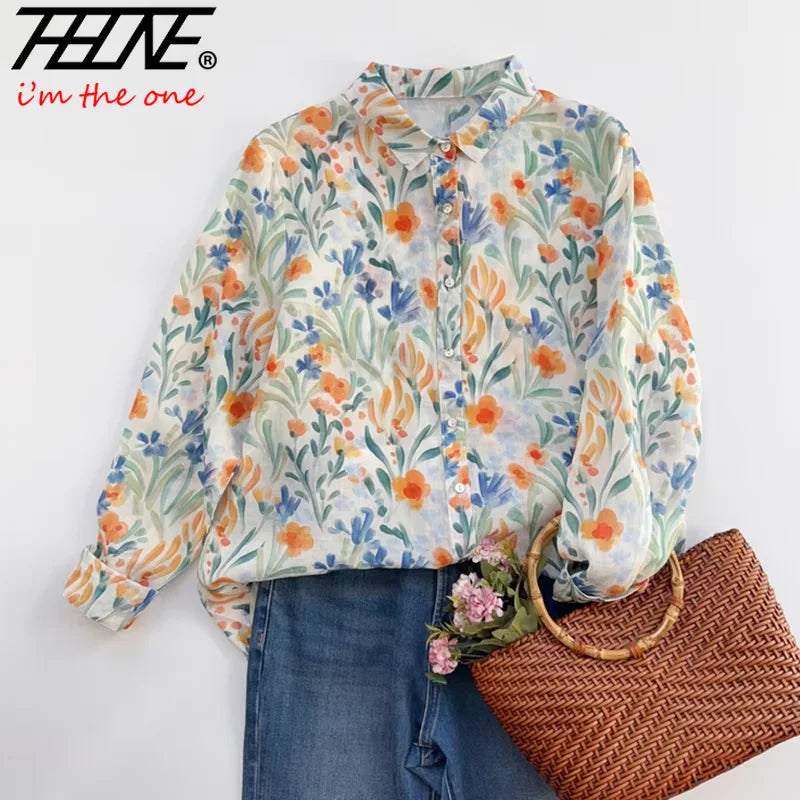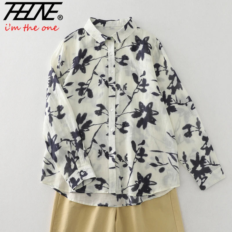 THHONE Spring Elegant Women’s Blouse 2025 | Single-Breasted Loose Print Vintage Shirt | Casual Women’s Top