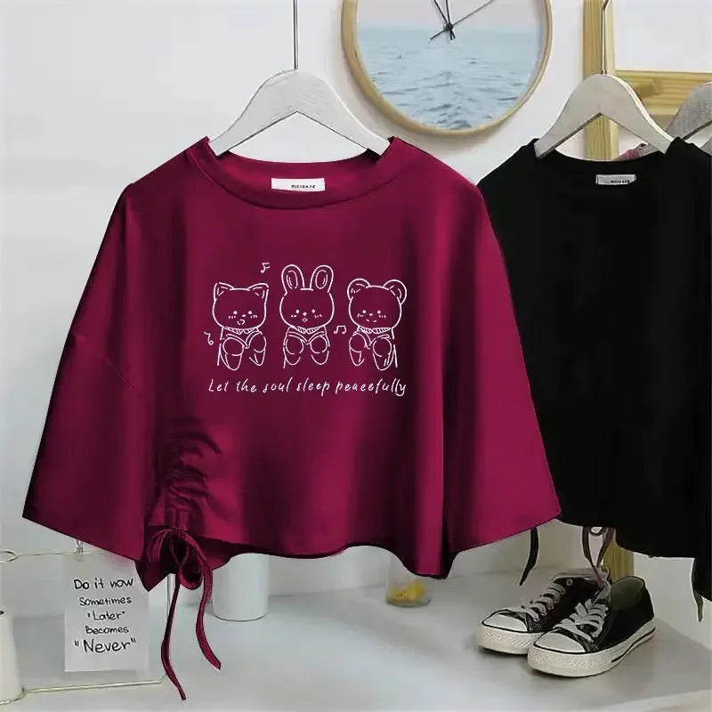 Made from soft, breathable cotton knit fabric, this top offers a loose, relaxed fit ideal for spring and summer days ☀️💕.