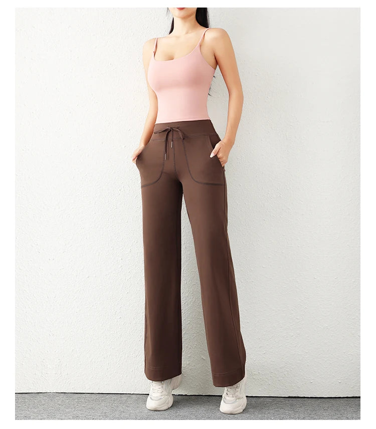 Women’s Loose Straight Sweatpants | Casual Wide Leg Running Pants | Drawstring Yoga Leggings with Side Pockets