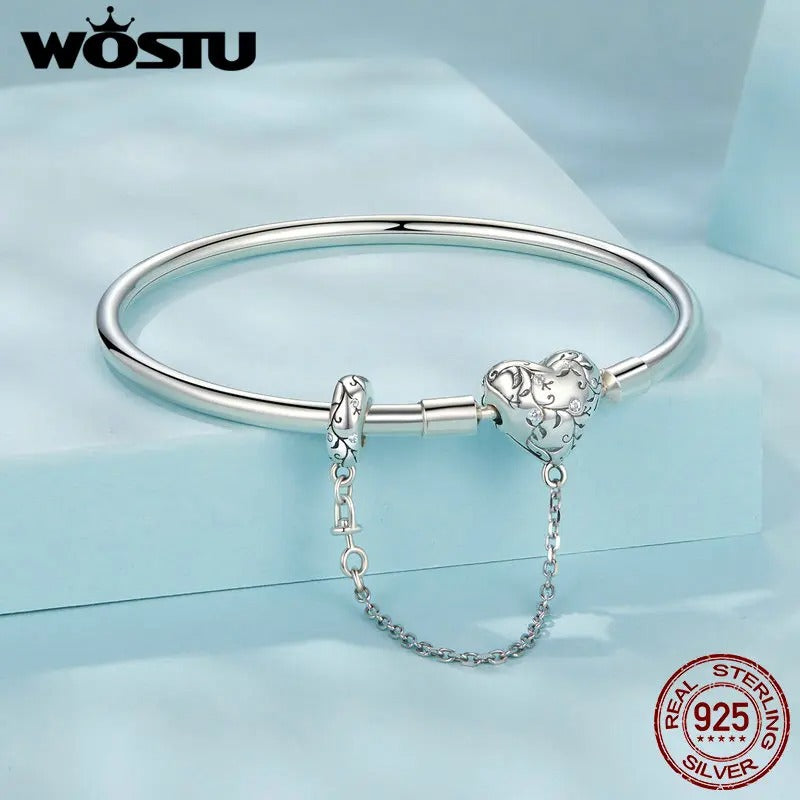Add a touch of romance to your collection with the WOSTU Hot 925 Sterling Silver Retro Heart Bracelet. Featuring a safety chain design with sparkling zircon accents, this bracelet is not only stylish but also secure for everyday wear.